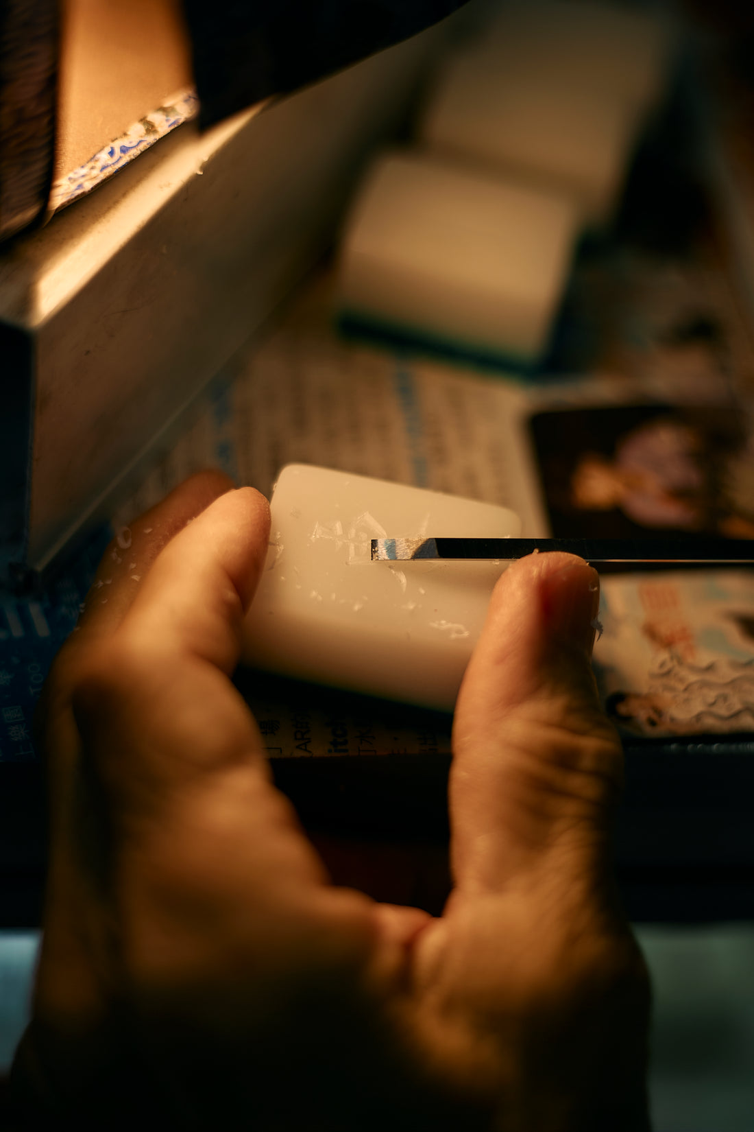 While the craft of mahjong tile making has seen a decline in skilled craftsmen over the years, Master Cheung remains a rare talent within the industry. We had the privilege of visiting Biu Kee Mahjong (標記麻雀) and witnessing the meticulous process of crafting mahjong tiles under his expert guidance.