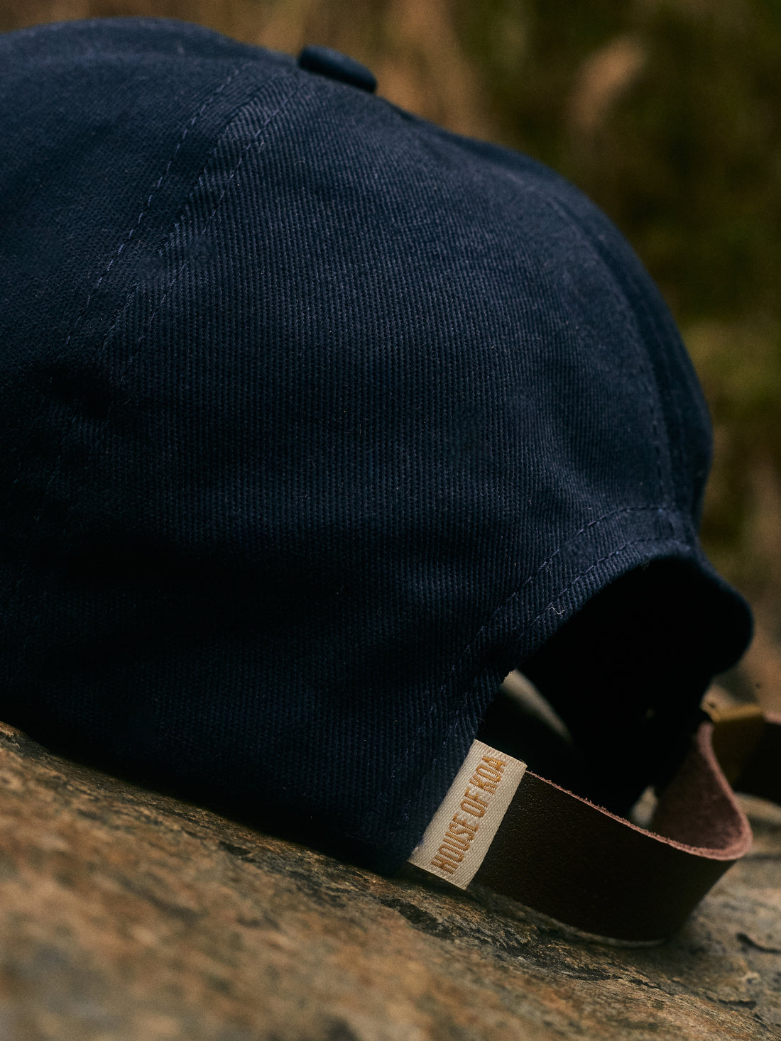 The cap features the House of Koa's signature monogram elegantly stitched onto the side, standing as an emblem for exploration. A leather tape at the back ensures a secure closure, promising a perfect fit.